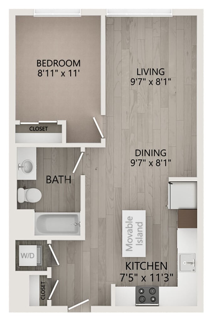 1 Bed, 1 Bath, 753-763 sq ftAvailable NowModel Gallery