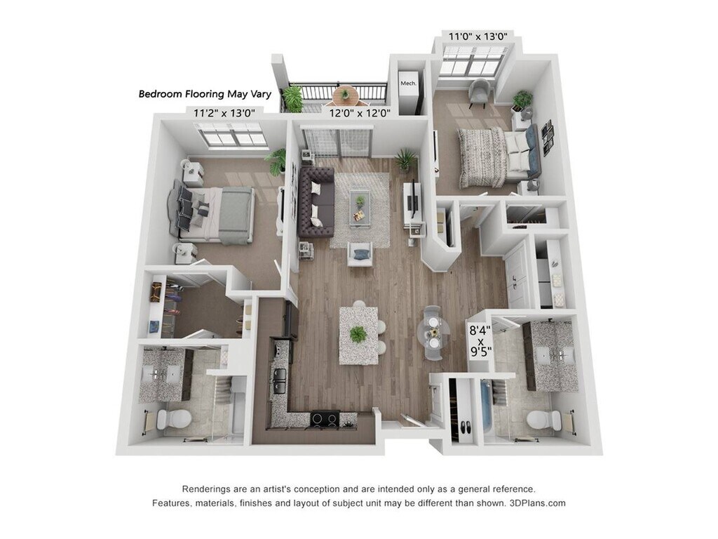 Apartment Model: D1From $1,2752 Bedroom, 2 Bath, 1109 sq ftUnavailable![]()