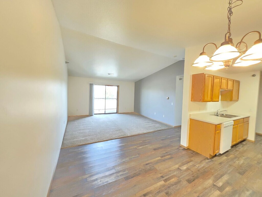 This top-floor 2-bedroom, 1-bath apartment in East Sioux Falls offers a blend of comfort and modern updates. With vaulted ceilings creating an airy, spacious feel, the unit features updated flooring throughout and a private deck perfect for relaxing. The master bedroom includes a walk-in closet, providing plenty of storage space. Conveniently located near an elevator, this apartment also comes with a garage included in the rent. Heat, water, and garbage are covered by the owner, making this an easy choice for your next home!