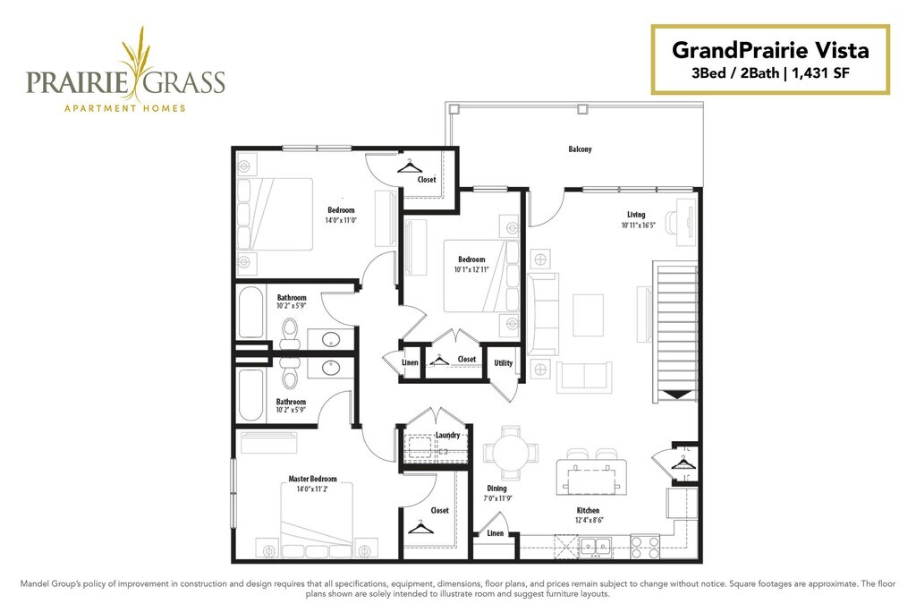 Prairie Grass at Waukee offers Studio to 3 Bedroom apartments starting from $984 and having 623–1,431 sq ft. Here is the current pricing and availability: