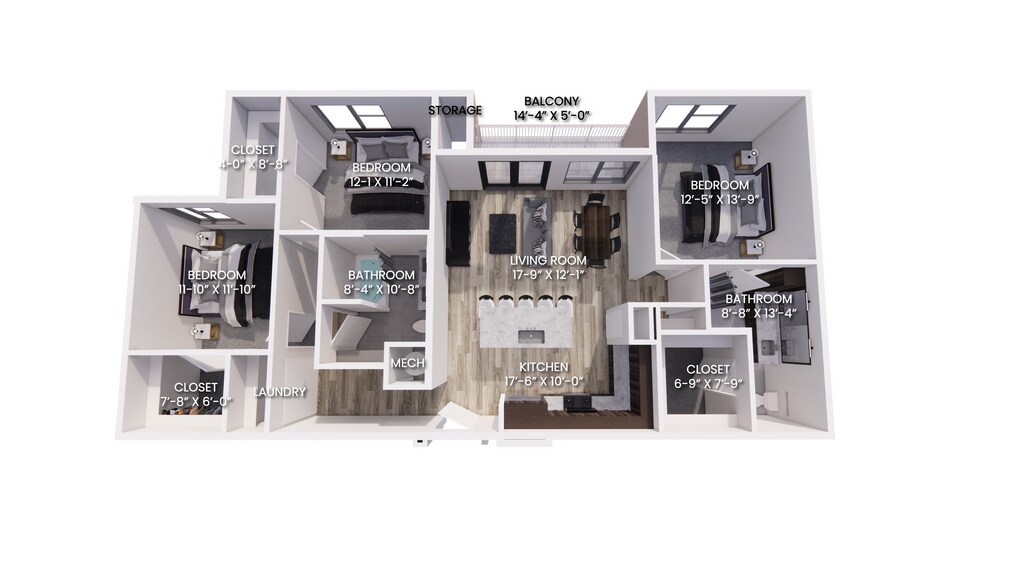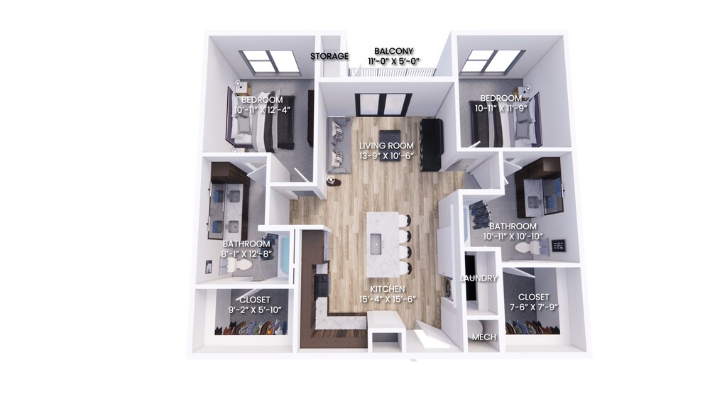 Apartment Model: A1.1From $1,6121 Bedroom, 1 Bath, 748 sq ftAvailable Now![]()