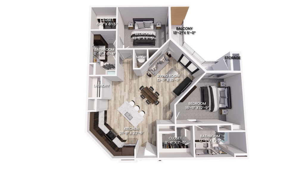 1 Bed, 1 Bath, 722 sq ftAvailable NowModel Gallery