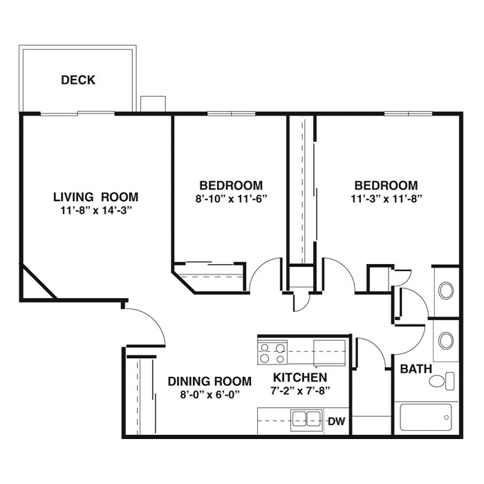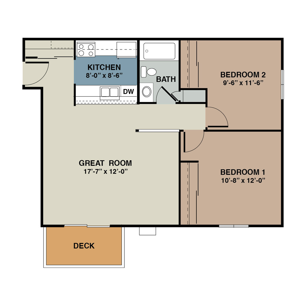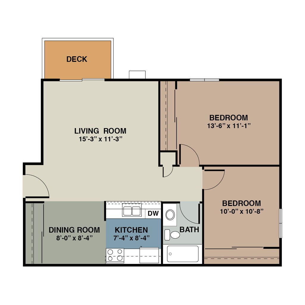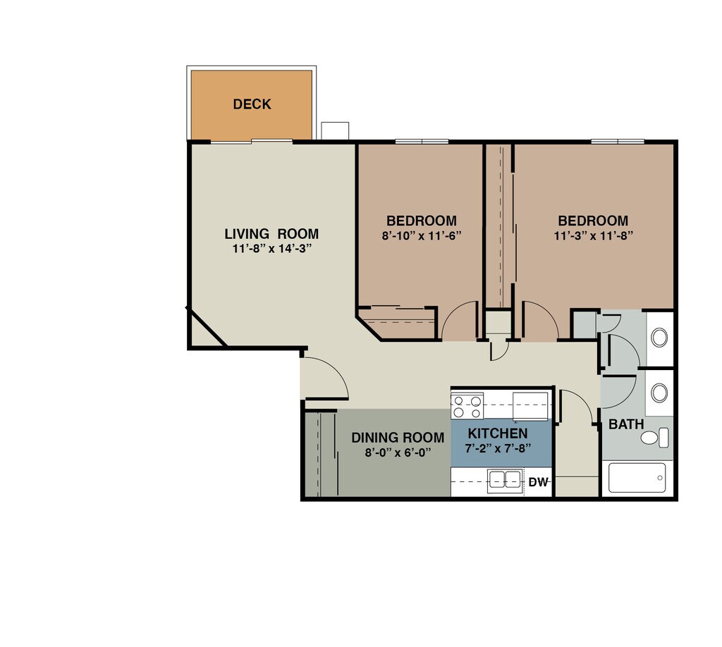 2 Beds, 1.25 Baths, 870 sq ftAvailable February 1, 2026Largest 2 BedroomThis is the largest 2 Bedroom at this PropertyModel Gallery