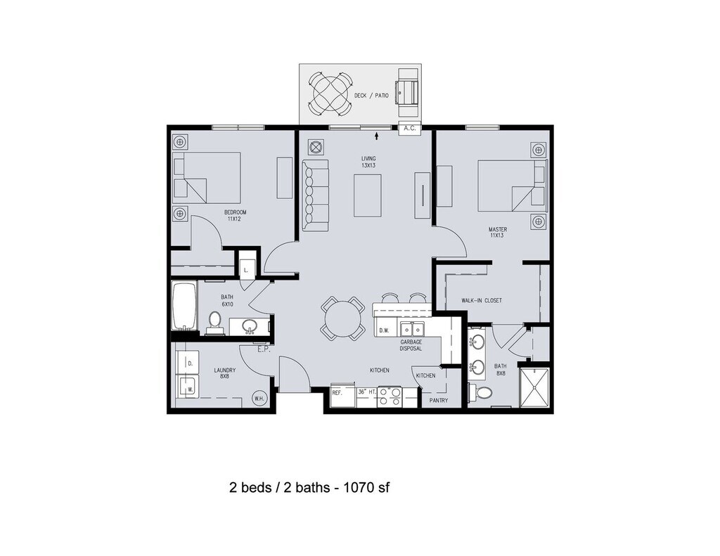 Apartment Unit: 204Apartment Model: 2BR/2.0BA$1,1502 Bedroom, 2 Bath, 1069 sq ftAvailable Now![]()