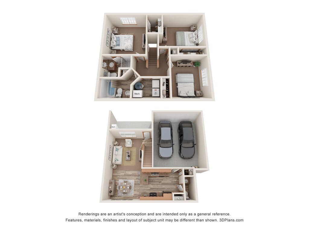 - 3 Bedrooms- 3 Bedrooms, 2.5 Bathrooms- $1,6003 Beds, 2.5 Baths, 1268 sq ftAvailable Nov 10- Model Gallery- Floorplans- Photos- Availability Details- Price - Availability Date - Unit - Sq Ft - Deposit - $1,600 - November 10, 2025 - 7452-13 - 1268 - $500 - Unit 7452-13 Amenities and Features- Features- Washer/Dryer