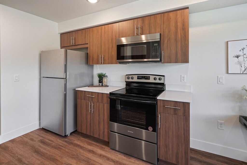 Welcome home to Preble Apartments—modern, comfortable living in the heart of La Pine, Oregon. These newly built 2-bed, 2-bath apartments offer 850 sq ft of stylish space designed for easy living. Enjoy an open-concept layout with modern finishes, stainless-steel appliances, and a built-in electric fireplace that adds warmth and charm. Each unit includes an in-home washer and dryer, ceiling fans in every bedroom, and energy-efficient heating and cooling for year-round comfort. Pet-friendly? Absolutely. Both dogs and cats are welcome here! Plus, off-street parking and 24/7 video surveillance make for a safe and convenient community. Nestled among the pines, you’ll love the peaceful setting with quick access to Highway 97—perfect for commuting to Bend or exploring Central Oregon’s outdoor playground. Hike, ski, or simply relax in a community that feels like a retreat. Special Offer: Sign a lease now and enjoy 1 month of free rent on select units! Availability is limited, so don’t wait to secure your new home. Contact Information: Travis Babcock, Multifamily Portfolio Manager x7