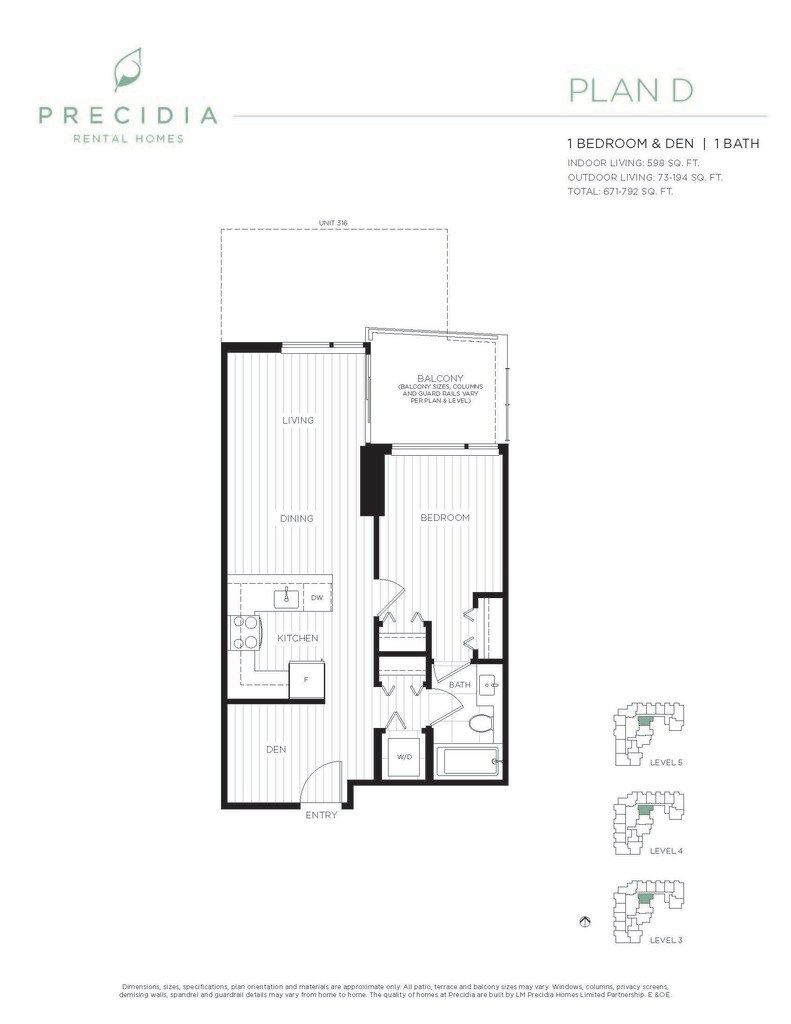 1 Bed, 1 Bath - Floorplan 5 1 Bed & Den
