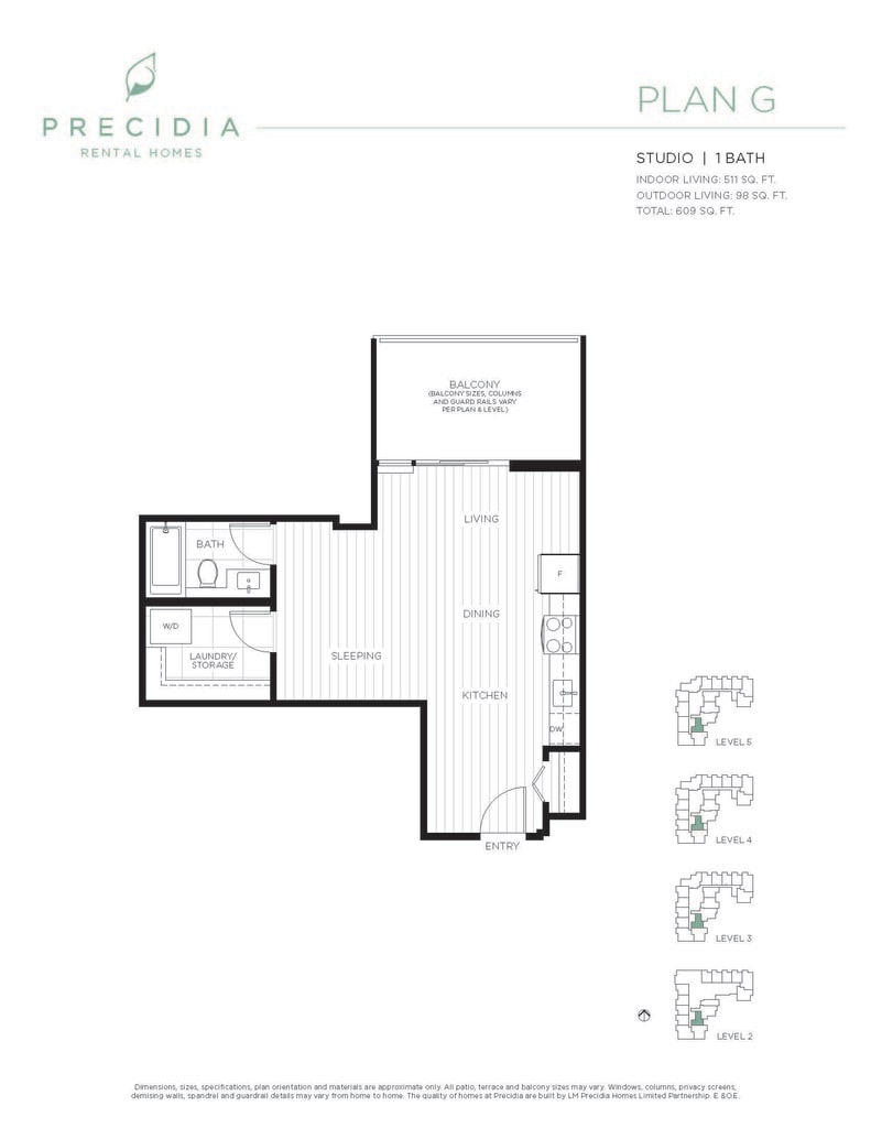 Precidia Rental offers Studio to 3 Bedroom apartments starting from $1,800 and having 500–871 sq ft. Here is the current pricing and availability: