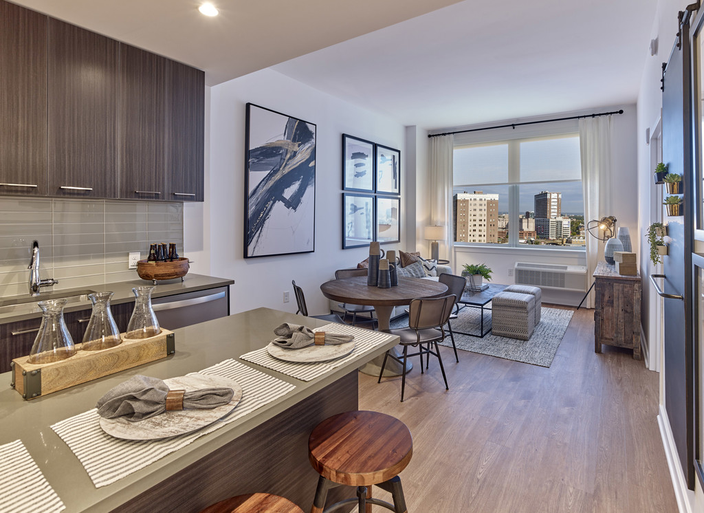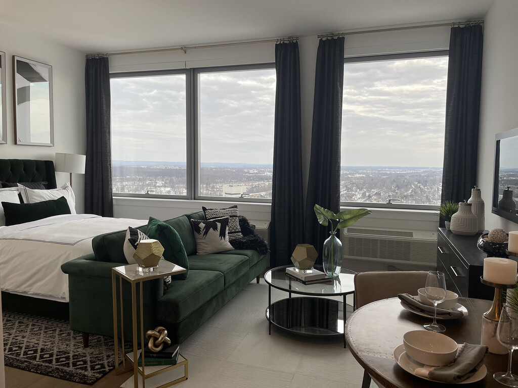 Introducing Premiere Residences, New Brunswicks newest collection of studio, 1 and 2-bedroom luxury rentals. Experience our unobstructed views and unrivaled amenities, including concierge service, a state-of-the-art fitness center with yoga studio, karaoke room, billiards room, and stunning Sky Lounge and penthouse roof deck, all atop the New Brunswick Performing Arts Center right downstairs. Indulge in the convenience that living in the heart of downtown offers, restaurants, cafes, and shops, with the train station just a short walk away.
