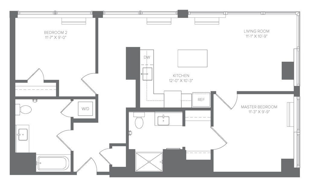 Apartment Model: Residence 02Call For Rates2 Bedroom, 2 Bath, 889 sq ftUnavailable![]() - Residence 02 - Floorplan 1