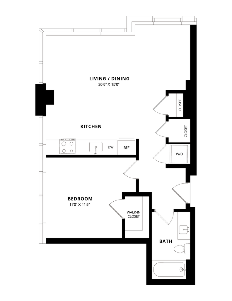 1 Bed, 1 Bath, 574 sq ftAvailable NowModel Gallery