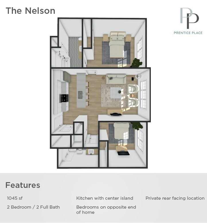 The Prentice - Floorplan 1 Apartment Unit: 2205Apartment Model: The Prentice$2,6002 Bedroom, 1.5 Bath, 904 sq ftAvailable NowThe Nelson