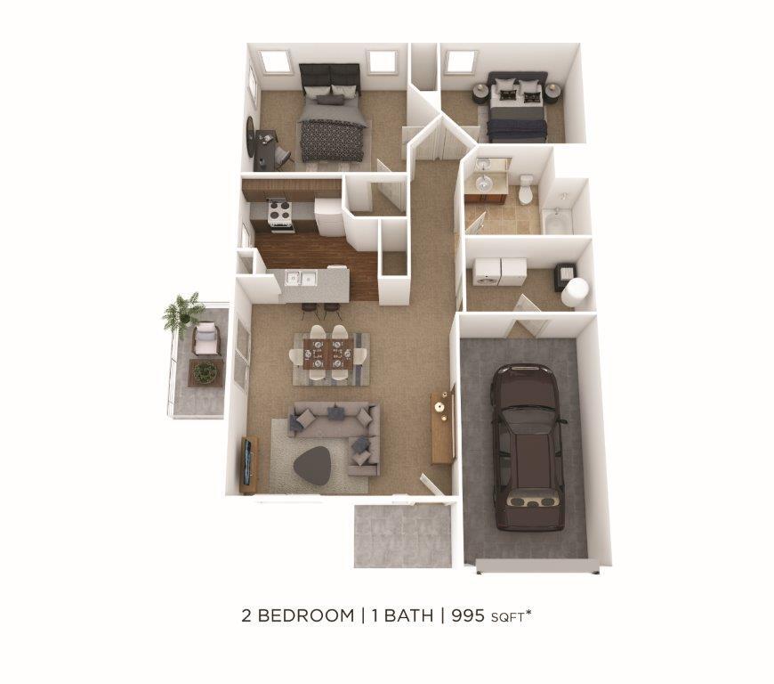 2 Beds, 1 Bath, 995 sq ftModel Gallery