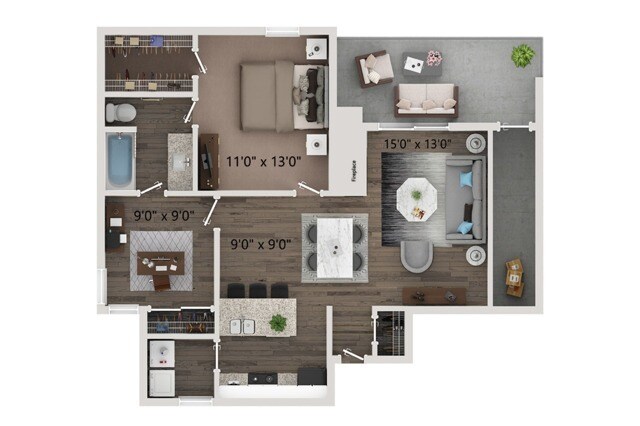 1 Bed, 1 Bath, 671 sq ftModel Gallery