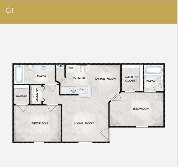Apartment Model: 1 Bedroom 1 BathroomFrom $8751 Bedroom, 1 Bath, 676 sq ftAvailable Now![]()