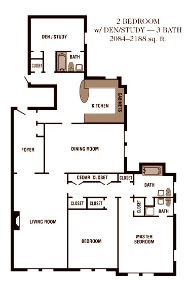 2 Beds, 3 Baths, 2084-2188 sq ftLargest 2 BedroomThis is the largest 2 Bedroom at this PropertyModel Gallery