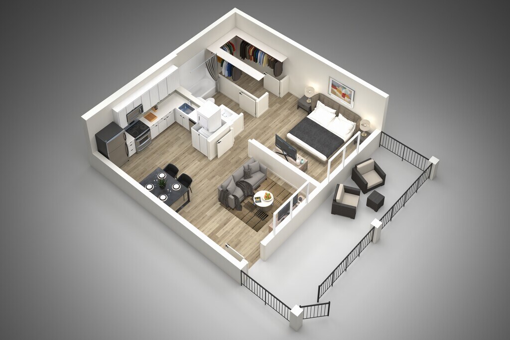 Studio - Type B GL - Floorplan 1 Apartment Unit: 6108Apartment Model: Studio - Type B GL$995Studio, 1 Bath, 367 sq ftAvailable NowStudio - Type B GL Patio