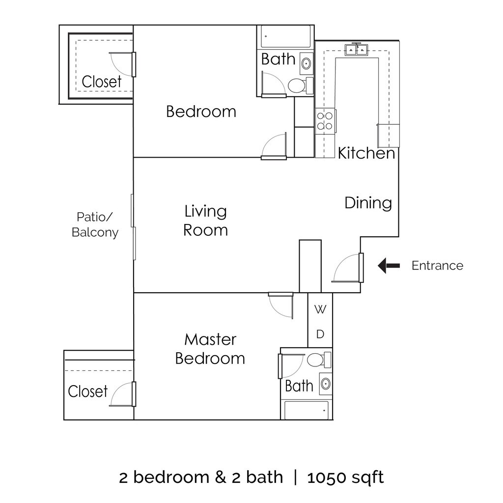 Apartment Model: 2x2From $1,9752 Bedroom, 2 Bath, 1050 sq ftAvailable Now2x2 - Floorplan 1