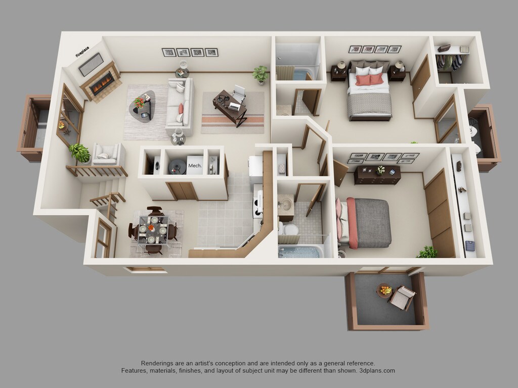 2 Beds, 2 Baths, 1300 sq ftAvailable NowLargest 2 BedroomThis is the largest 2 Bedroom at this PropertyModel Gallery