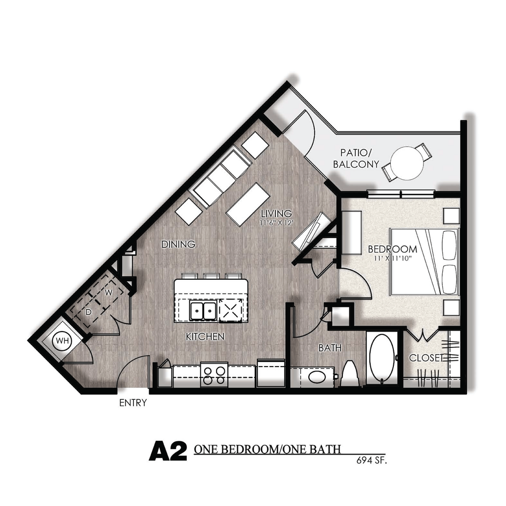 1 Bed, 1 Bath, 694 sq ftModel Gallery