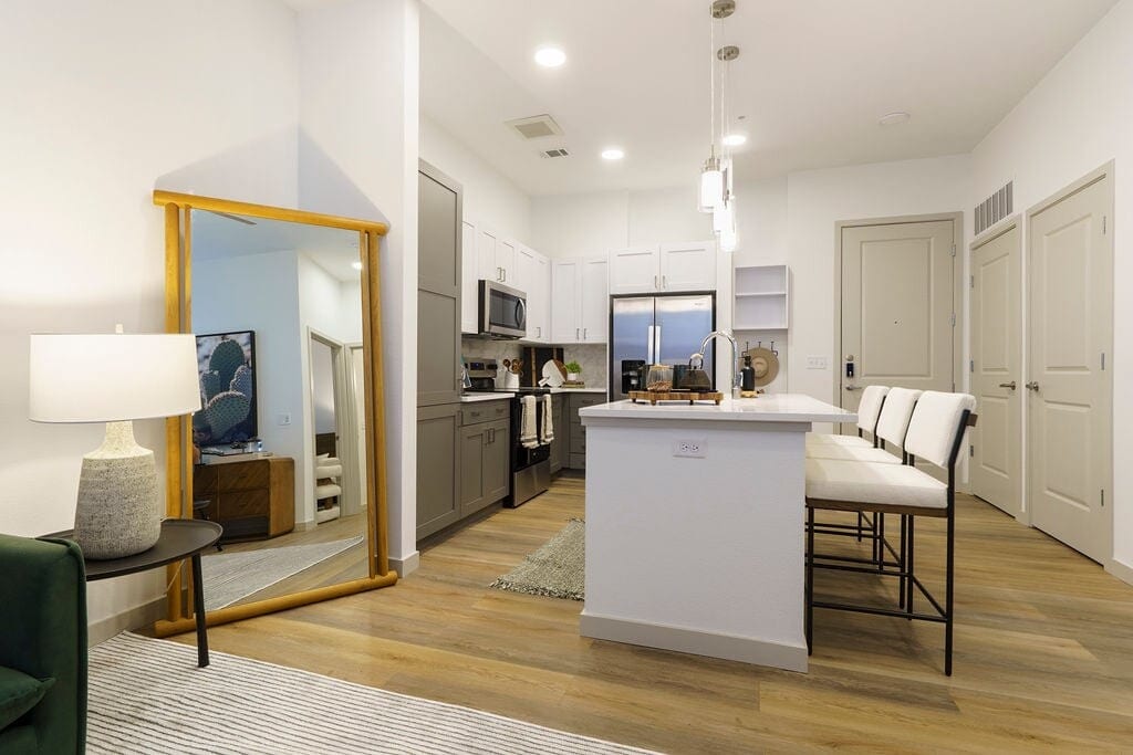 Experience contemporary comfort at Presidium Casa Siena on Airport Road in Santa Fe, NM. Choose studio, 1, and 2-bedroom homes with smart-home touches and stylish finishestwo-tone cabinetry with quartz, tile backsplash, energy-efficient stainless appliances, wood-style flooring, expansive closets, keyless entry, and in-home washer/dryer. Select layouts add pantries, mudroom entries, built-in desks, dual vanities, walk-in showers with bench, and garden tubs. Amenities for work, play, and relaxation include a heated pool with tanning ledge, outdoor kitchens and pavilion with fireplace, hammock lawn, courtyard games, clubroom with chefs kitchen, co-working lounge, executive conference room, fitness studio, elevators, EV charging, and a fenced dog park with wash. Minutes to Santa Fe Place Mall, SFCC, Sun Mountain Trailhead, and Santa Fe Country Club. Book your tour today!