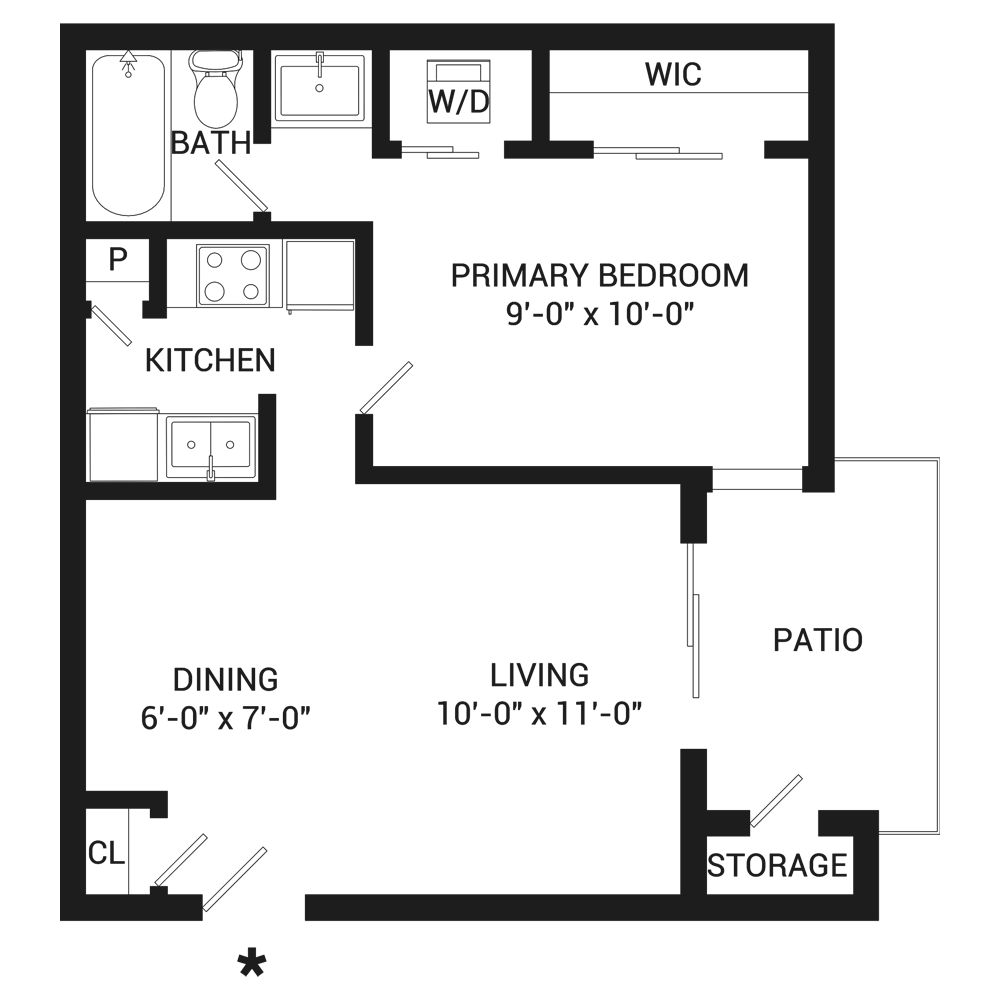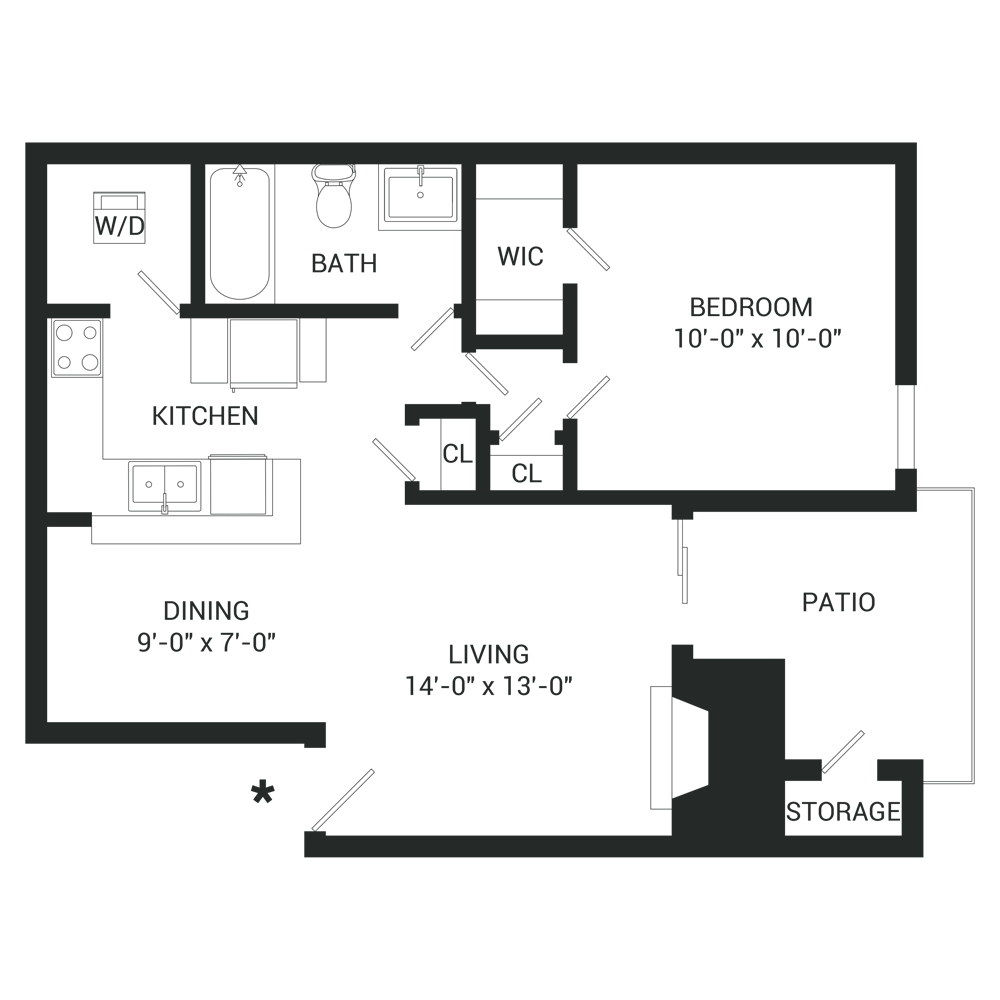 Apartment Model: SlateFrom $9211 Bedroom, 1 Bath, 524 sq ftAvailable NowFloor plans are artist's rendering. All dimensions are approximate. Actual product and specifications may vary in dimension or detail. Not all features are available in every rental home. Please see a representative for details.
