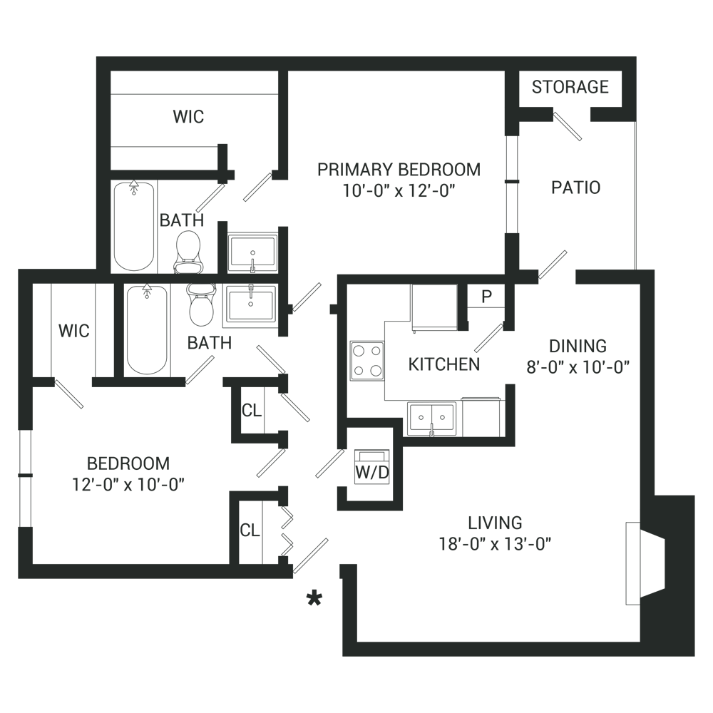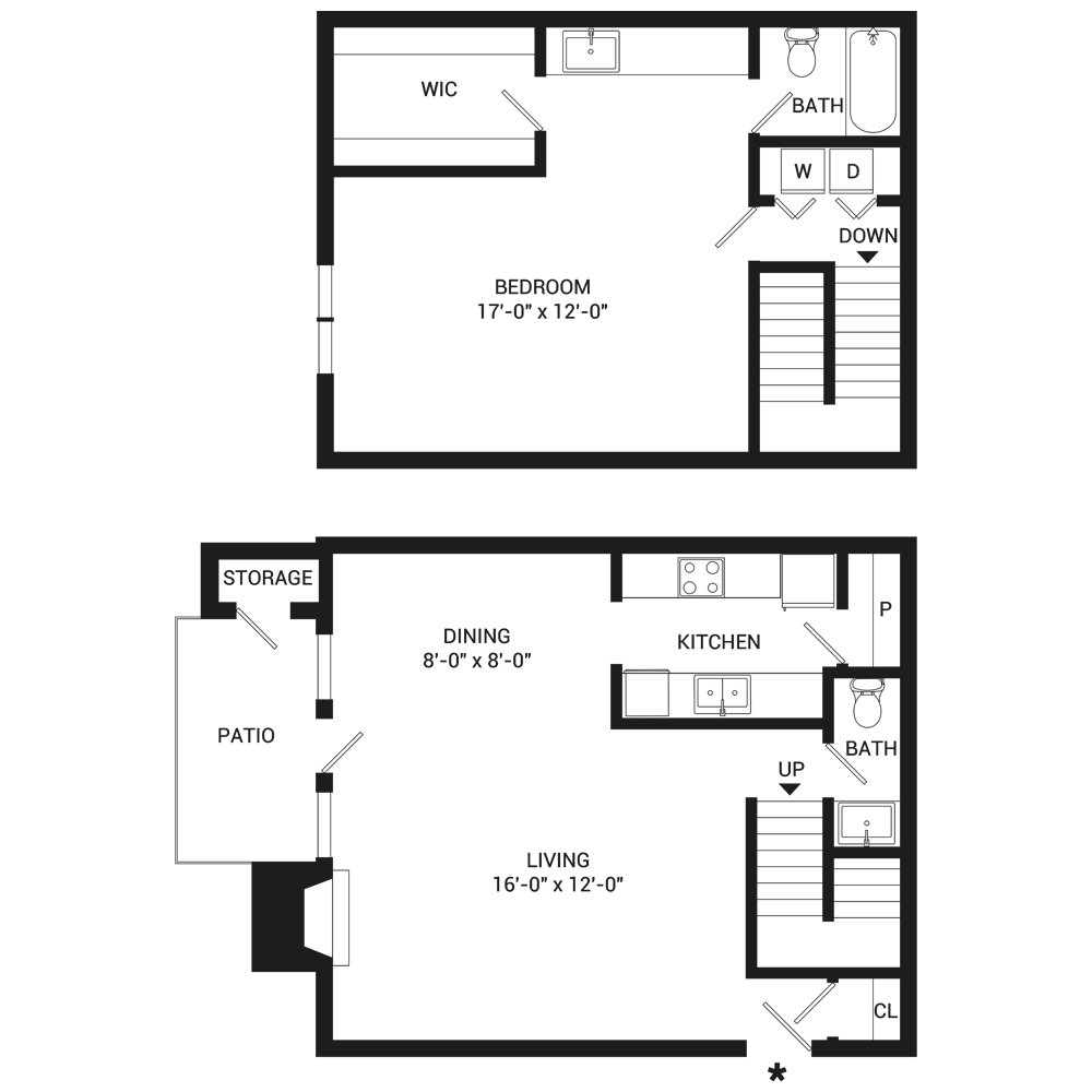 Slate - Floorplan 1 Floor plans are artist's rendering. All dimensions are approximate. Actual product and specifications may vary in dimension or detail. Not all features are available in every rental home. Please see a representative for details.