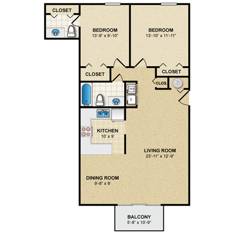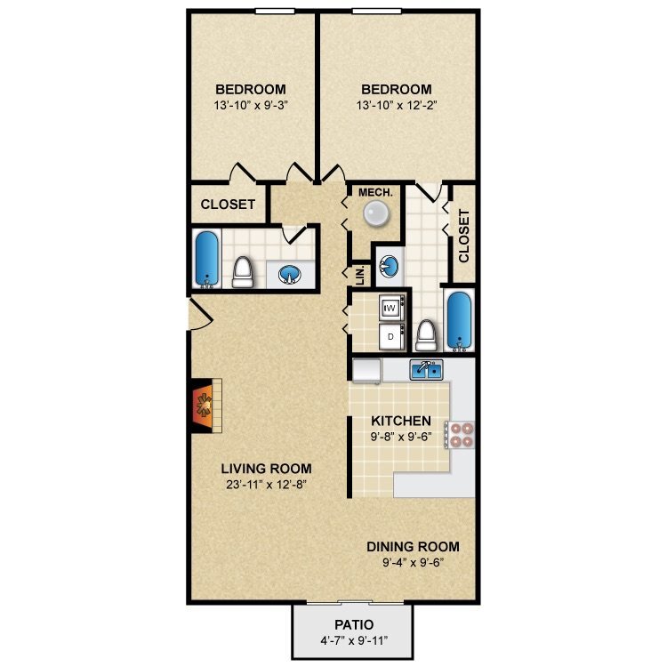 Apartment Model: Hampton2 Bedroom, 2 Bath, 1104 sq ftAvailable Now![]()