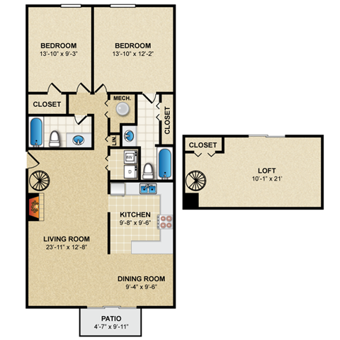 Apartment Model: Hampton with Loft2 Bedroom, 2 Bath, 1357 sq ftUnavailable![]()