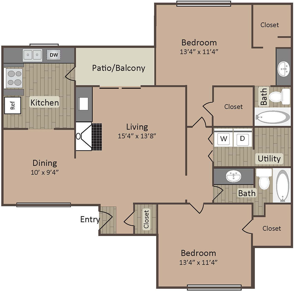 2 Beds, 2 Baths, 1186 sq ftAvailable NowModel Gallery
