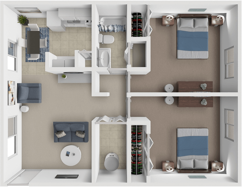 2 Beds, 1 Bath, 680 sq ftAvailable NowModel Gallery