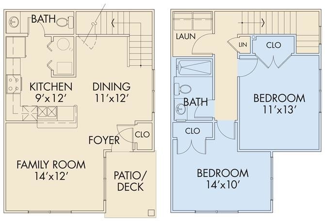 Two Bedroom Townhome - Floorplan 1 Two Bedroom w/ Two Bath