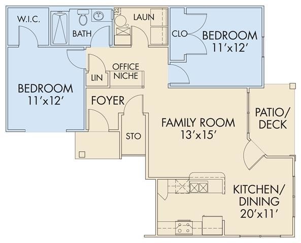 Two Bedroom w/ Two Bath - Floorplan 1 3 Bedrooms