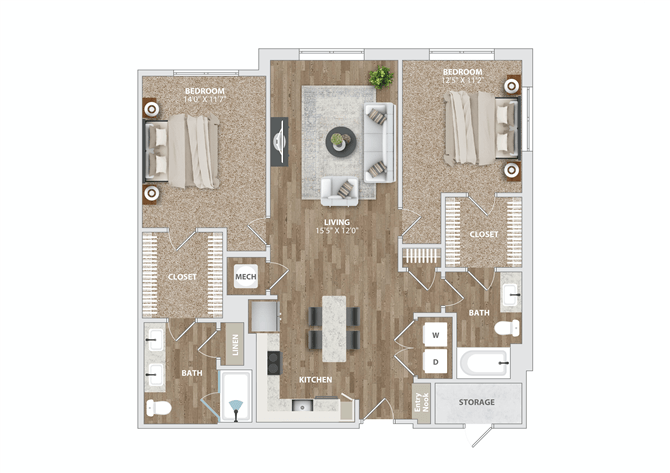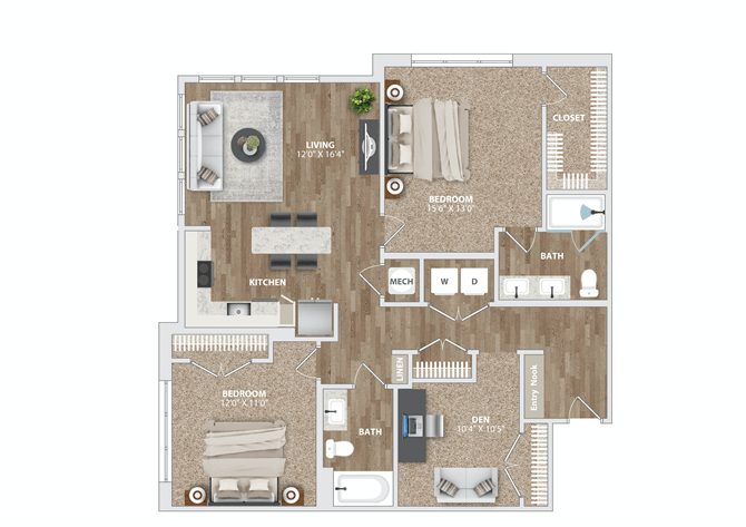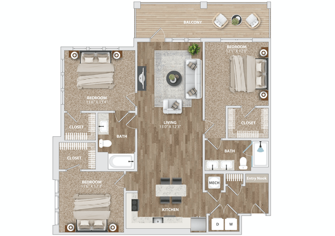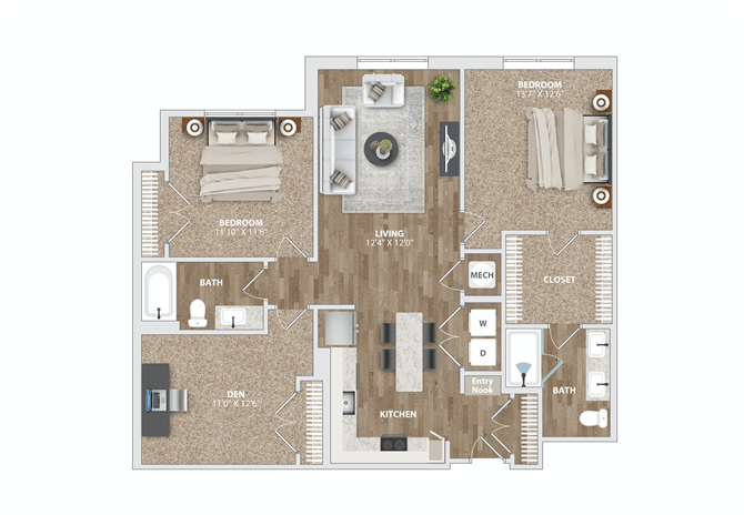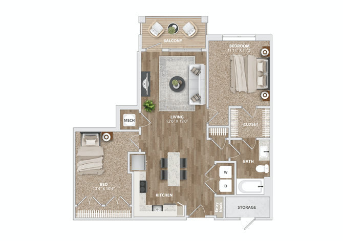 1 Bed, 1 Bath, 707 sq ftAvailable NowModel Gallery