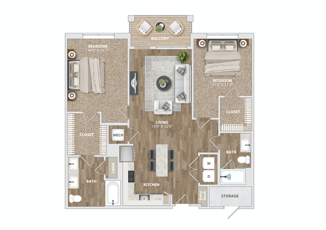 Apartment Model: A2AFrom $1,5021 Bedroom, 1 Bath, 749 sq ftAvailable Now![]()