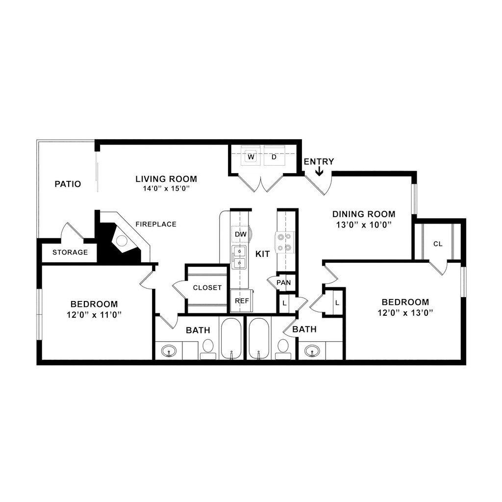 Apartment Model: B12 Bedroom, 2 Bath, 1116 sq ftAvailable Now![]()