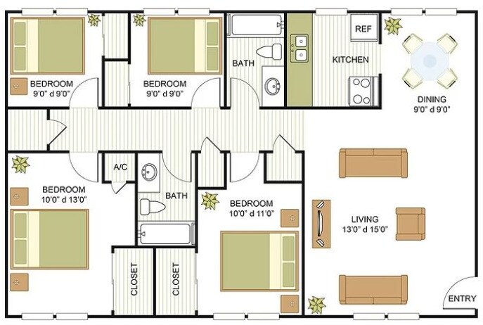 Apartment Unit: C123Apartment Model: 3Bed-2Bath$1,2003 Bedroom, 2 Bath, 1021 sq ftAvailable NowApartment Unit: E136Apartment Model: 3Bed-2Bath$1,2003 Bedroom, 2 Bath, 1021 sq ftAvailable NowApartment Unit: Q323Apartment Model: 3Bed-2Bath$1,2003 Bedroom, 2 Bath, 1021 sq ftAvailable Now4 Bedrooms