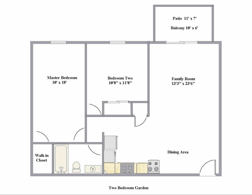 Apartment Model: 2 Bedroom Deluxe-Lower Level with Patio$1,0752 Bedroom, 1 Bath, 800 sq ftAvailable Now![]()