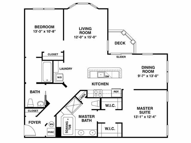 2 Beds, 2 Baths, 1297 sq ftLargest 2 BedroomThis is the largest 2 Bedroom at this PropertyModel Gallery
