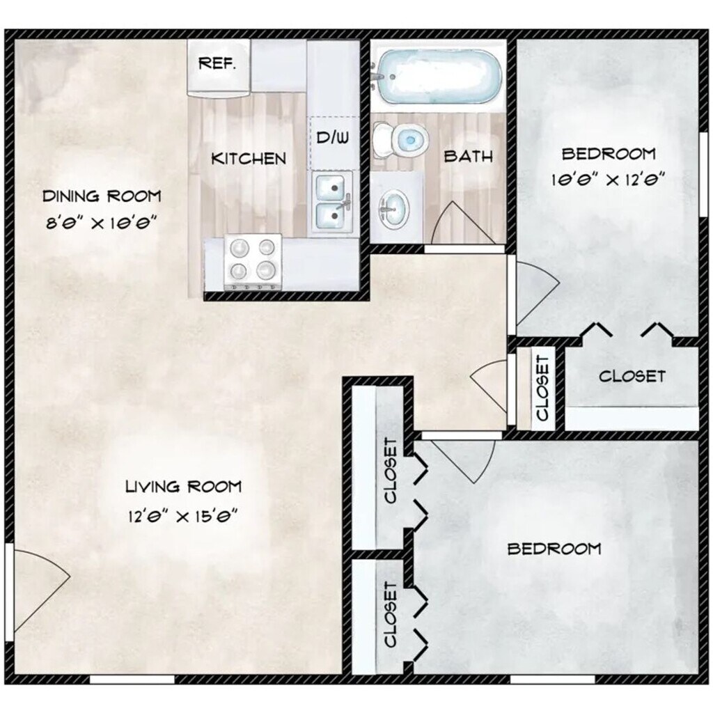 2 Beds, 1 Bath, 754 sq ftAvailable NowModel Gallery