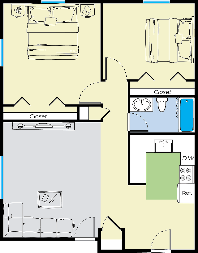 Apartment Model: Two Bedroom Dog FriendlyFrom $1,7502 Bedroom, 1 Bath, 787-797 sq ftUnavailable![]()