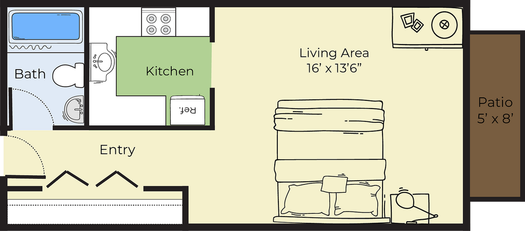 Studio, 1 Bath, 379 sq ftModel Gallery