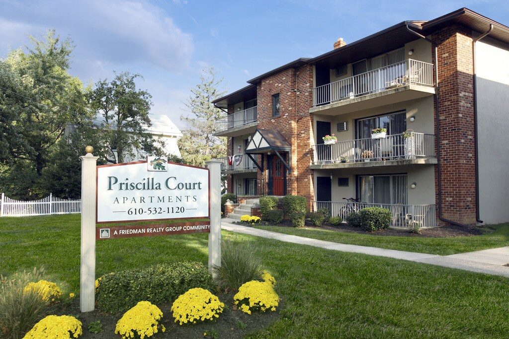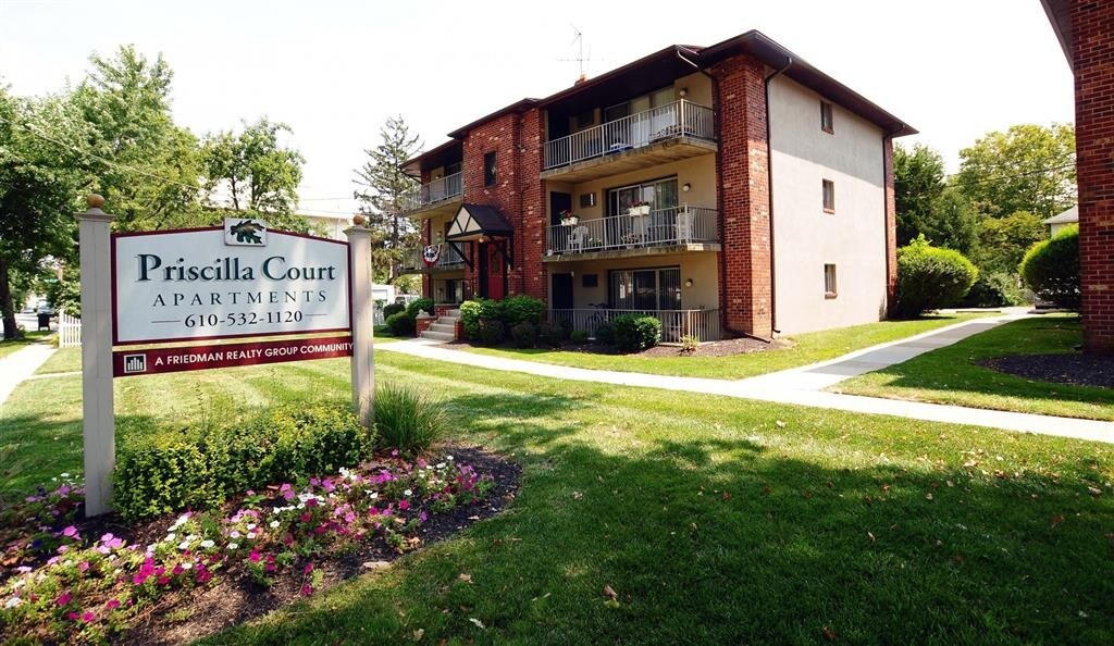 Welcome home to Priscilla Court Apartments, a two-bedroom garden-style apartment community located among a serene residential setting just a few blocks to I-476 and West Chester Pike. Each of these spacious apartments features wall-to-wall carpeting, custom interior paint colors and private patios/balconies. Select floor plans offer designer kitchens with white shaker style cabinets and appliances including a dishwasher and garbage disposal. Our renovated bathrooms feature ceiling height tile tub surround, tile flooring, new vanities, and updated brushed nickel fixtures. All residents enjoy free gas heat and hot water, convenient on-site laundry facilities and ample off-street parking. Priscilla Court Apartments is located just off I-476 and I-95 and is nearby Boeing. Residents can also walk to the Prospect Park Station and hop on SEPTA's Regional Rail for a quick commute to Philadelphia, PA or Wilmington, DE. Call today to learn how you can Live the Friedman Five Star Lifestyle at Priscilla Court Apartments!