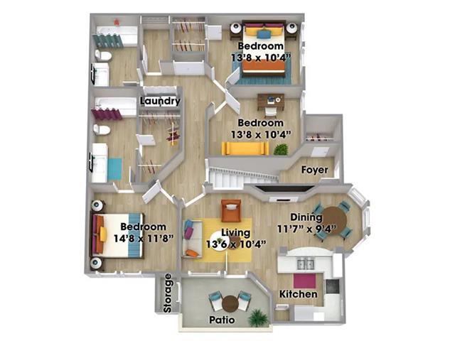 Apartment Model: Cyan RenovatedFrom $1,5752 Bedroom, 2 Bath, 1098-1110 sq ftAvailable Now![]()