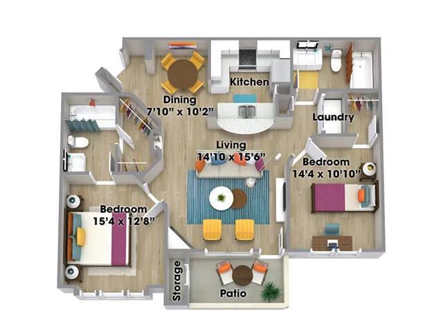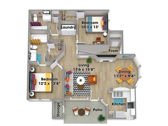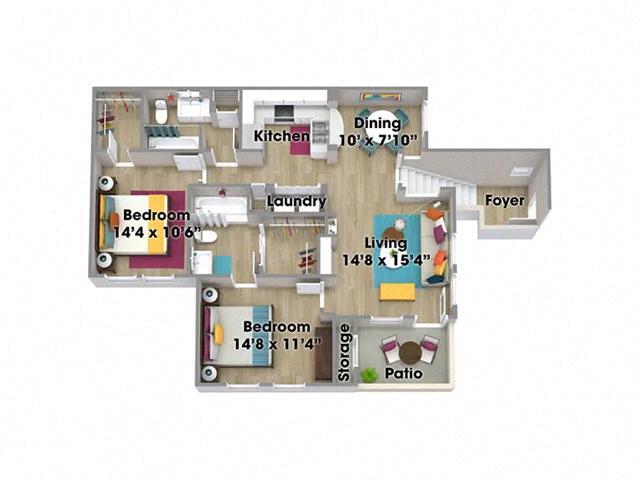 2 Beds, 2 Baths, 1098-1110 sq ftAvailable NowCheapest 2 BedroomThis is the cheapest 2 Bedroom at this PropertyModel Gallery