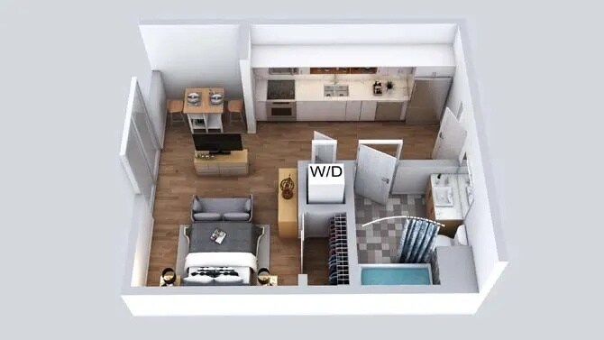 Studio, 1 Bath, 419-455 sq ftAvailable NowModel Gallery