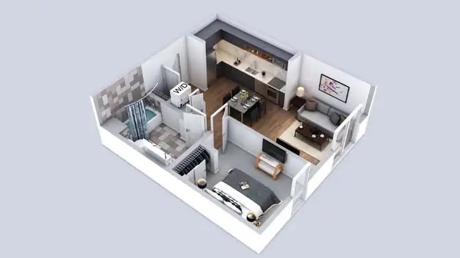 Studio, 1.5 Baths, 708 sq ftLargest StudioThis is the largest Studio at this PropertyModel Gallery