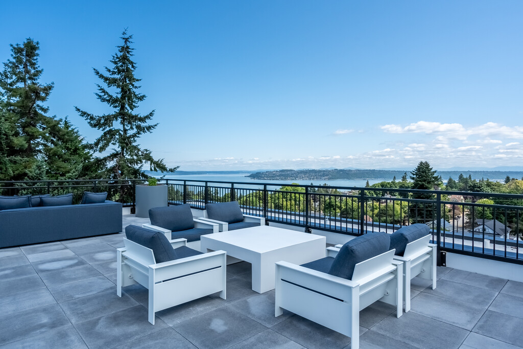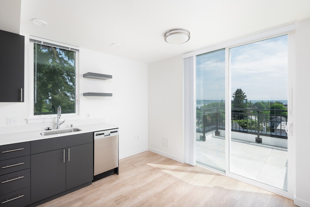 Located on the first floor (not ground level) #114 offers an open-concept layout with an east-facing exposure that brings in beautiful morning light. Enjoy your own private patio with charming peekaboo views of Mt. Rainier and Commencement Bay—perfect for a peaceful start to the day in a thoughtfully designed space.