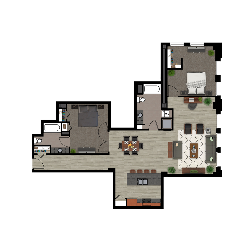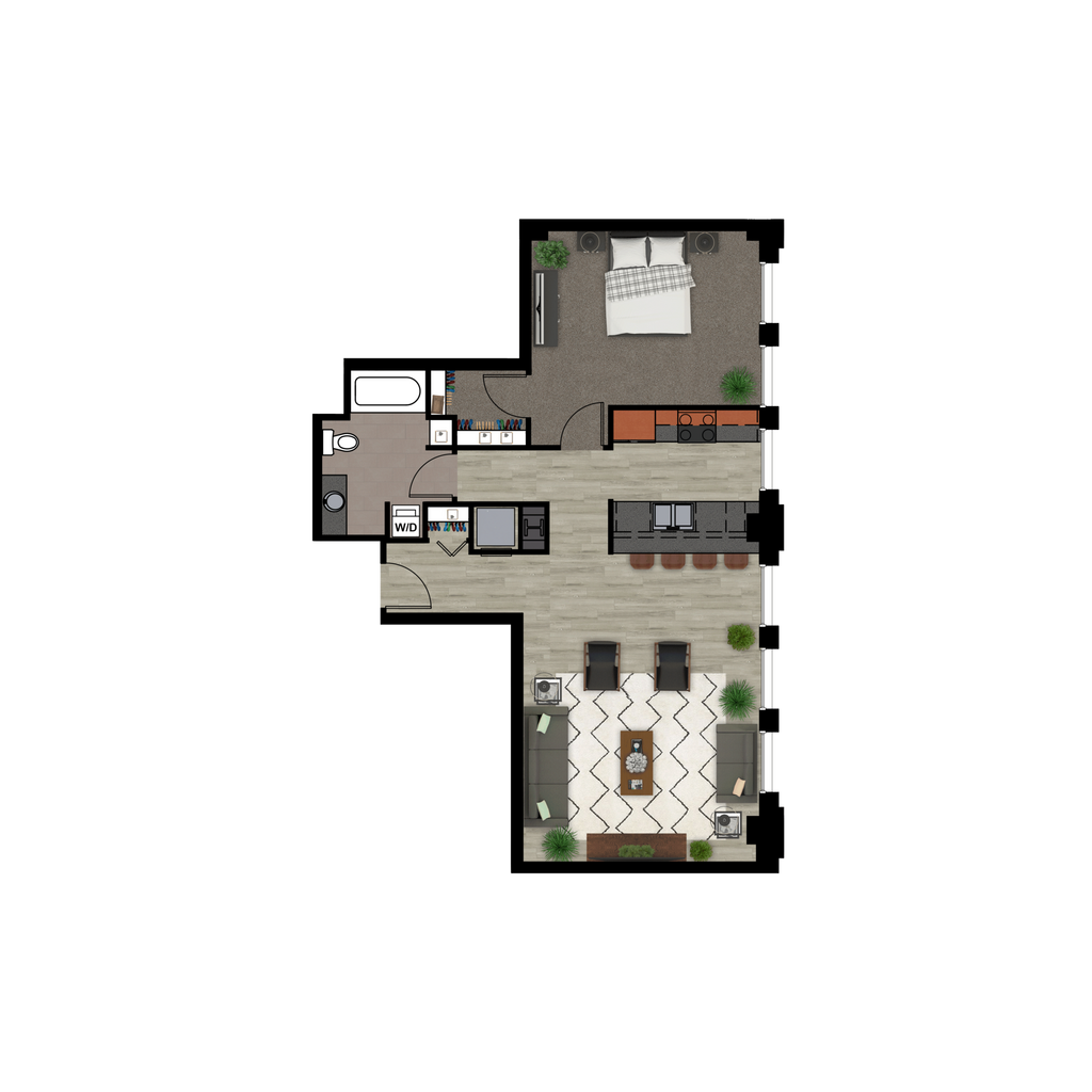 1 Bed, 1 Bath, 719 sq ftModel Gallery