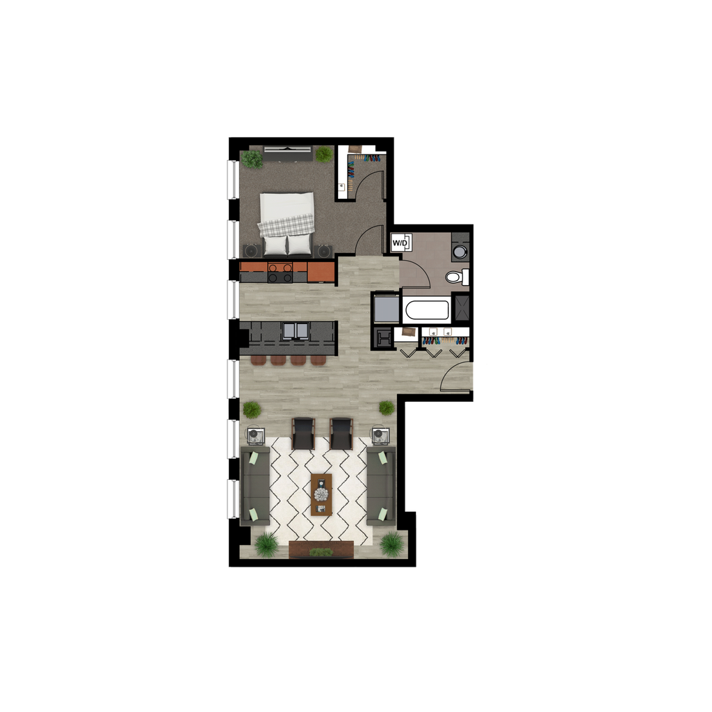 1 Bed, 1 Bath, 741 sq ftModel Gallery
